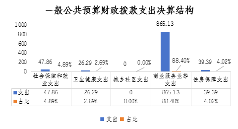 2024年一般公共預算財政撥款支出978.67萬元,主要用于以下方面:社會保障和就業(yè)支出47.86萬元,占總支出的4.89%;衛(wèi)生健康支出26.29萬元,占總支出的2.69%;商業(yè)服務業(yè)等支出865.13萬元,占總支出的88.40%;住房保障支出39.39萬元,占總支出的4.02%。