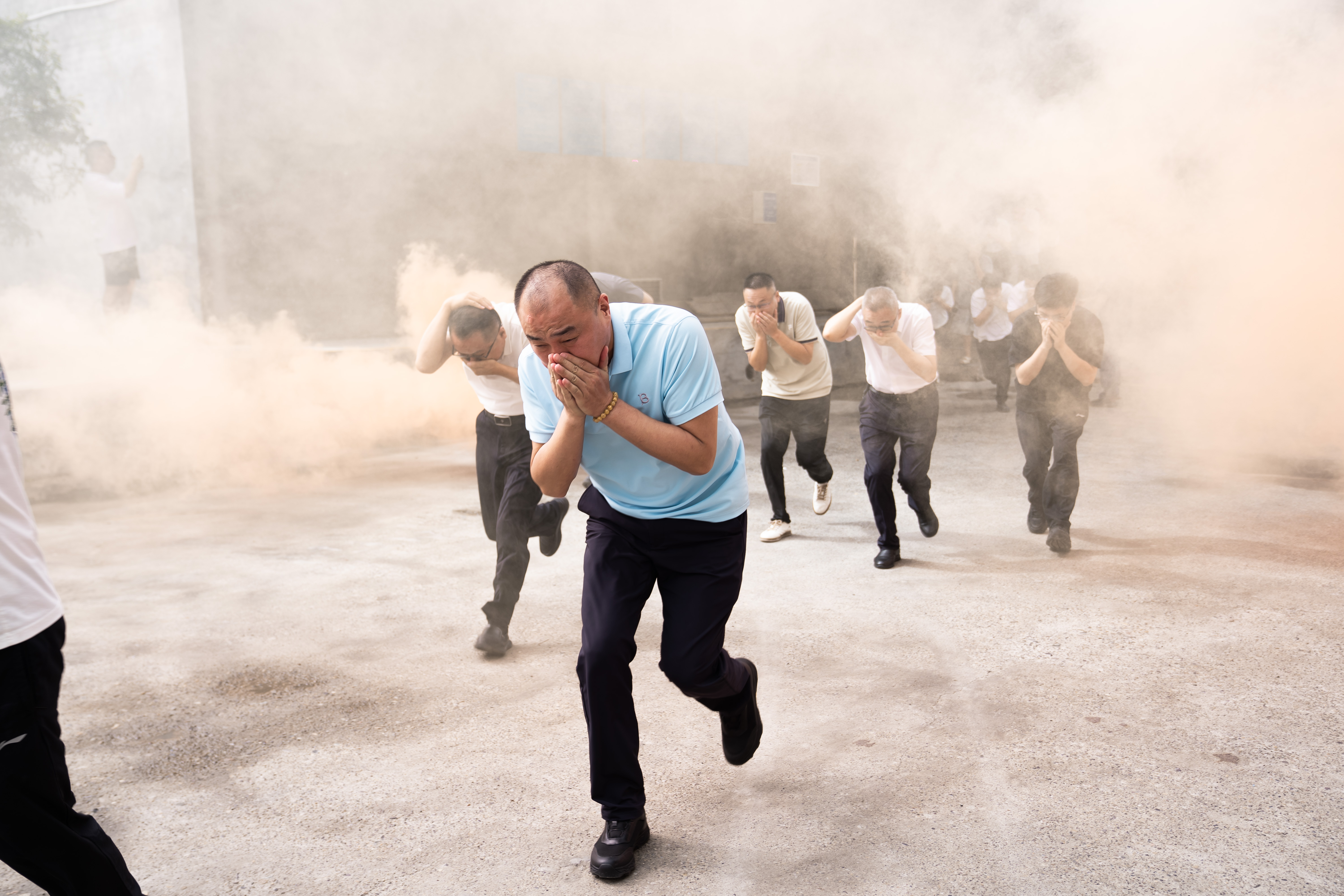 隨后,緊張有序的實(shí)操演練拉開帷幕。模擬倉庫真實(shí)火險場景展開消防演練,重點(diǎn)檢驗倉庫易燃物起火、突發(fā)火情、電氣短路火災(zāi)應(yīng)對措施及技巧。消防員指導(dǎo)參訓(xùn)人員現(xiàn)場演練了火警速報、初期撲救,滅火器、消火栓使用,人員應(yīng)急疏散,傷員搜救、現(xiàn)場急救及多部門應(yīng)急聯(lián)動響應(yīng)等相關(guān)場景。演練結(jié)束后,組織方立即進(jìn)行了全面評估與總結(jié)優(yōu)化。整場演練高度貼近實(shí)戰(zhàn),參訓(xùn)人員反應(yīng)敏捷、操作精準(zhǔn),不僅驗證了應(yīng)急預(yù)案的可行性,更顯著提升了隊伍的實(shí)戰(zhàn)應(yīng)急處置水平。